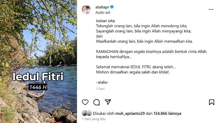 Mohon dimaafkan segala salah dan khilaf," demikian pesan nasehat yang disampaikan Atalia melalui sebuah postingan di Instagram, Senin (31/3/2025).