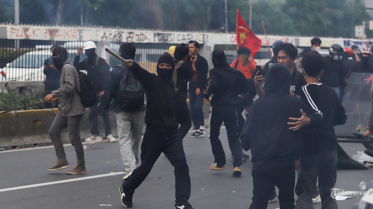 Aksi unjuk rasa di depan gedung DPR / MPR RI disinyalir telah disusupi perusuh dari kelompok anarko.