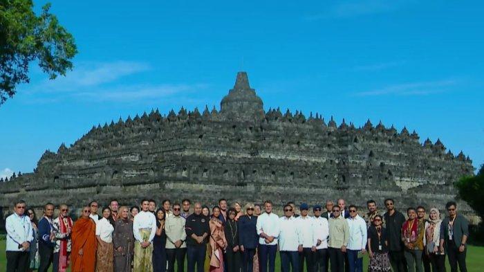 Diketahui Presiden Prabowo Subianto didampingi putranya, Didit Hediprasetyo. Sementara Presiden Macron didampingi Ibu Negara Brigitte, bersama-sama mengunjungi Candi Borobudur.