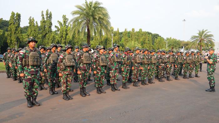 Di Ibu Kota, ratusan personel TNI dan kepolisian dikerahkan untuk menjaga ketertiban pada Senin (1/9/2025).