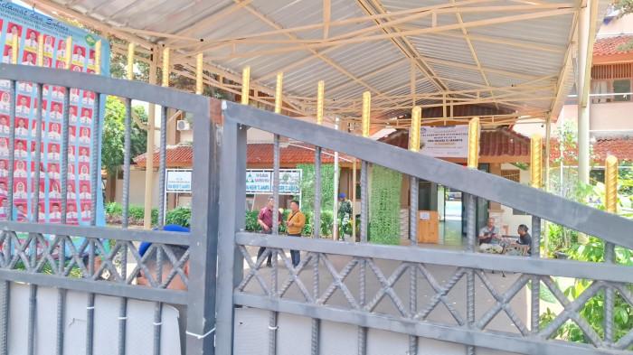 Terlihat sejumlah personel dari Kodaeral III TNI AL dan polisi militer TNI AL berada di balik gerbang bagian dalam sekolah.