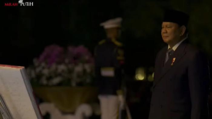 “Marilah kita mengenang arwah dan jasa para pahlawan yang telah gugur membela kemerdekaan, kedaulatan, dan kehormatan bangsa Indonesia, khususnya mereka-mereka yang gugur dalam perlawanan terhadap kekuatan asing yang mendukung penjajahan kembali bangsa Indonesia oleh bangsa asing," kata Prabowo.