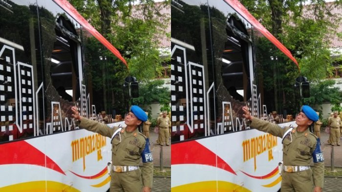 Lantas, kaca pecah terkena dahan pohon dan bagian bus sisi kanan lecet, disaksikan ribuan Aparatur Sipil Negara (ASN) Pemkot Solo yang berbaris usai apel pagi.
