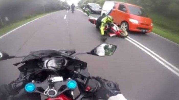 Sebuah video yang diunggah akun Instagram @agoez_bandz memperlihatkan pengendara Yamaha YZF-R1 mendadak crash setelah menyundul buntut Daihatsu Gran Max.