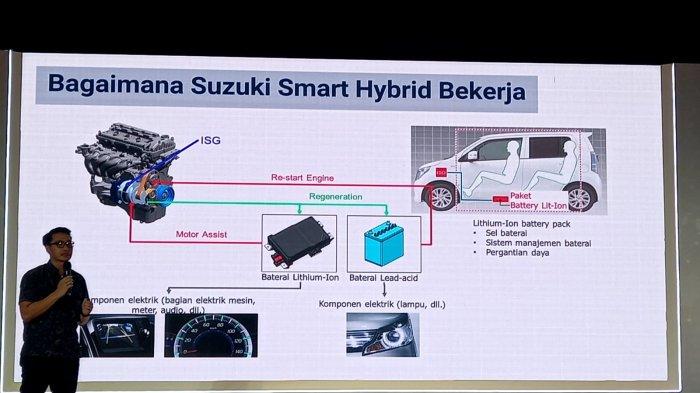 Yulius Purwanto, Head of 4W Development PT Suzuki Indomobil Sales (SIS), di booth Suzuki di pameran IIMS Hybrid 2022, Rabu (6/4/2022) lalu membeberkan, teknologi smart hybrid mulai bekerja pada saat mesin mulai di-restrat alias mulai melaju.