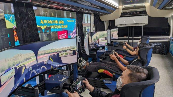 Di kabin bus ini bisa ditemukan 5 unit simulator balap yang bisa dicoba langsung oleh pengunjung secara bergantian mencoba tanpa harus mengantri lama.