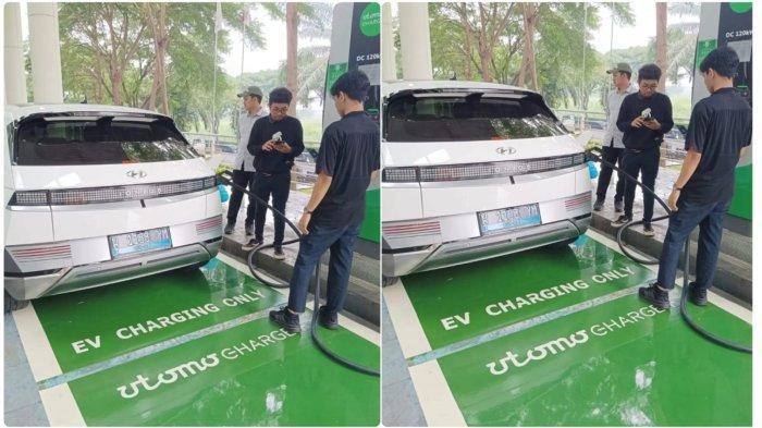 Pengisian daya gratis ini disediakan oleh perusahaan penyedia SPKLU, Utomo Charge+.