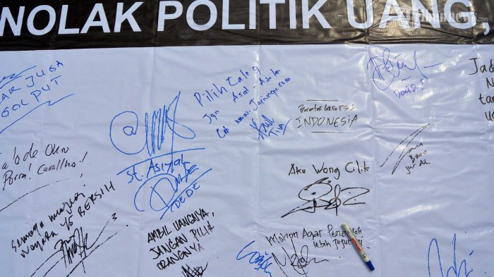 TRIBUNNEWS.COM, JAKARTA - Dalam kampanye rapat umum terbuka yang sudah terlaksana sejak 16 Maret, praktik politik uang berlangsung dan dilakukan peserta pemilu baik partai politik dan calon anggota legislatifnya, dan calon perseorangan DPD RI.