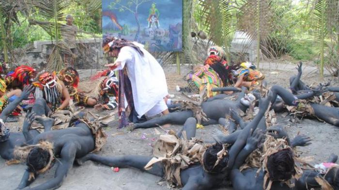 Ritual yang diikuti oleh puluhan orang laki-laki itu menceritakan pertarungan antara dua calon pemimpin yang merebut hati rakyat. Kisah itu digambarkan dalam tokoh Hayam Wuruk dan Patih Gajah Mada dengan setting masa kerjaan Majapahit puluhan abad silam. Cerita Satrio Piningit itu sama dengan Pilpres tahun ini.