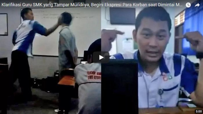 Guru pria yang menampar muridnya di sebuah Sekolah Menengah Kejuruan (SMK) di Purwokerto membuat video klarifikasi, Kamis (19/4/2018).