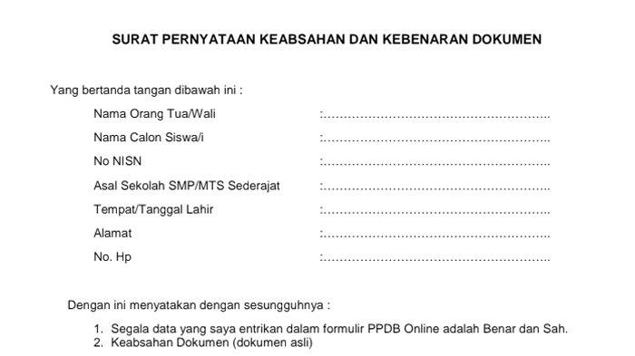 Contoh Surat Pernyataan Keabsahan Dokumen PPDB 2021, Dokumen yang Wajib Diunggah saat Pendaftaran