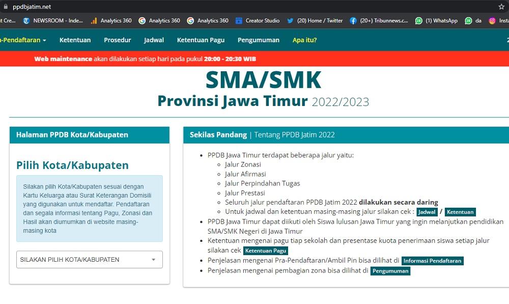 Proses PPDB Jawa Timur Tahun 2022 untuk jenjang SMA dan SMK dilaksanakan secara online melalui laman ppdb.jatimprov.go.id.
