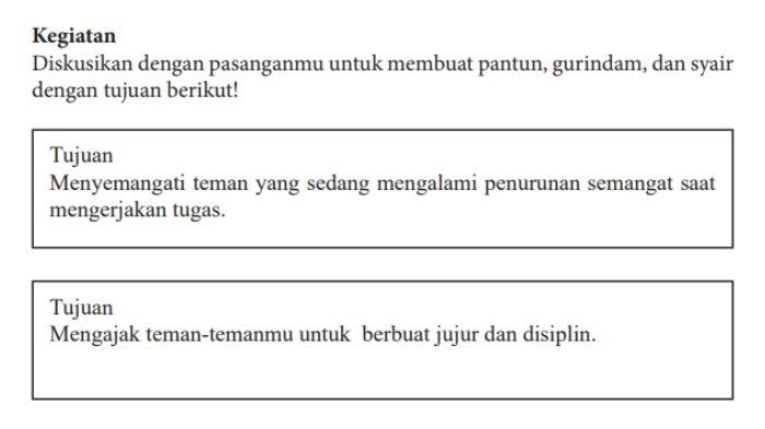Diskusikan dengan pasanganmu untuk membuat pantun, gurindam, dan syair dengan tujuan berikut!