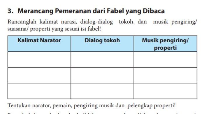 Ini kunci jawaban Bahasa Indonesia kelas 7 halaman 238 semester 2: Merancang Pemeranan dari Fabel yang Dibaca.