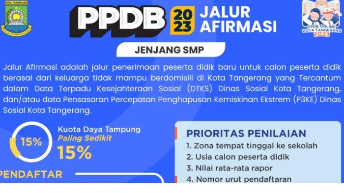 Sebagai informasi, jalur afirmasi adalah jalur penerimaan peserta didik baru untuk calon peserta didik berasal dari keluarga tidak mampu berdomisili di Kota Tangerang.