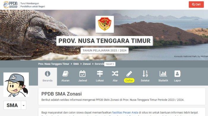 TRIBUNNEWS.COM - Pendaftaran Penerimaan Peserta Didik Baru (PPDB) Provinsi Nusa Tenggara Timur (NTT) jenjang Sekolah Menengah Atas (SMA) tahun 2023 tahap II jalur zonasi dibuka mulai hari ini, Kamis (6/7/2023).
