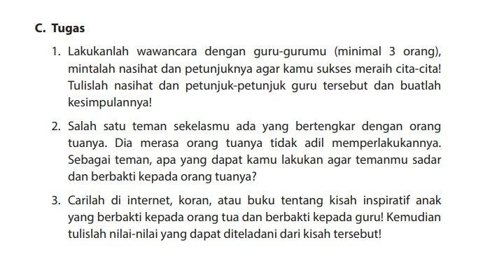 3. Carilah di internet, koran, atau buku tentang kisah inspiratif anak yang berbakti kepada orang tua dan berbakti kepada guru! Kemudian tulislah nilai-nilai yang dapat diteladani dari kisah tersebut!
