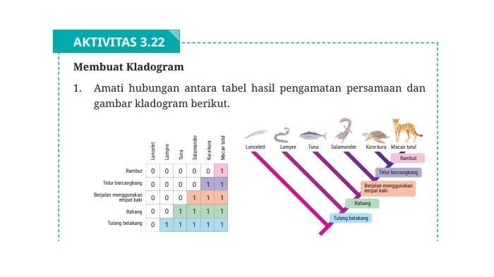 Kunci Jawaban Biologi Kelas 12 Halaman 165 Kurikulum Merdeka, Membuat Kladogram