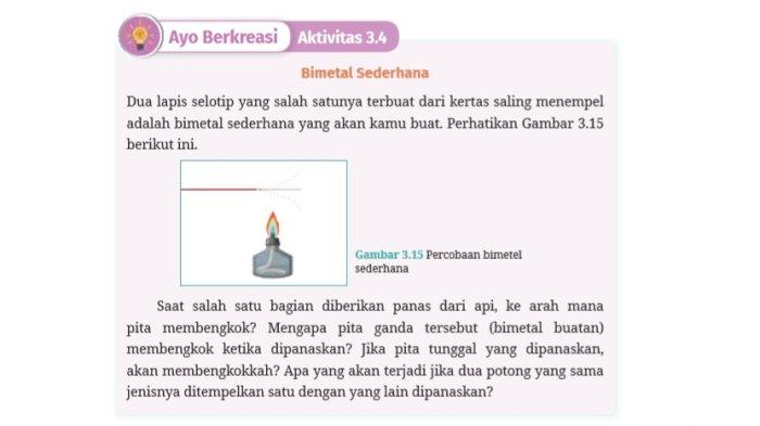 Kunci jawaban IPA Kelas 7 halaman 103 Kurikulum Merdeka Edisi Revisi, Ayo Berkreasi Aktivitas 3.4, mengapa pita ganda bimetal buatan membengkok.