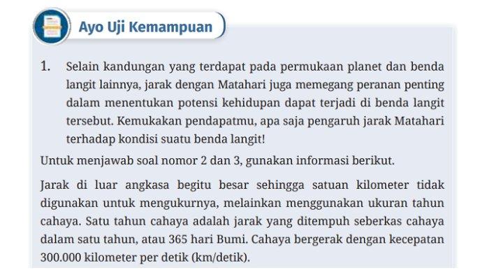 Simak kunci jawaban mata pelajaran IPA kelas 7 halaman 226 Kurikulum Merdeka tentang bumi dan tata surya, utamanya mengenai jarak.