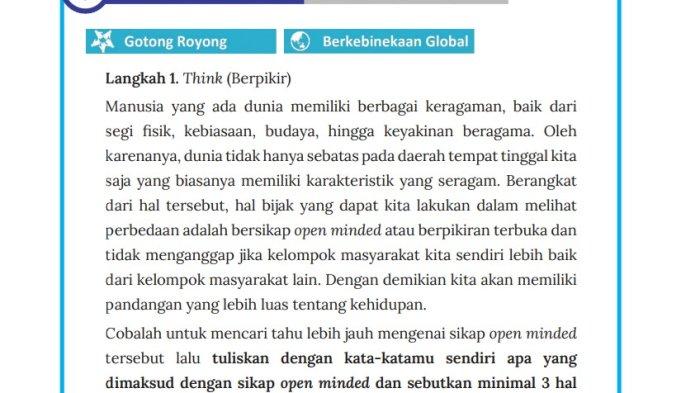 Nantinya, siswa diharuskan untuk berpikir mengenai sikap open minded dan sebutkan minimal 3 hal contoh perilakunya.