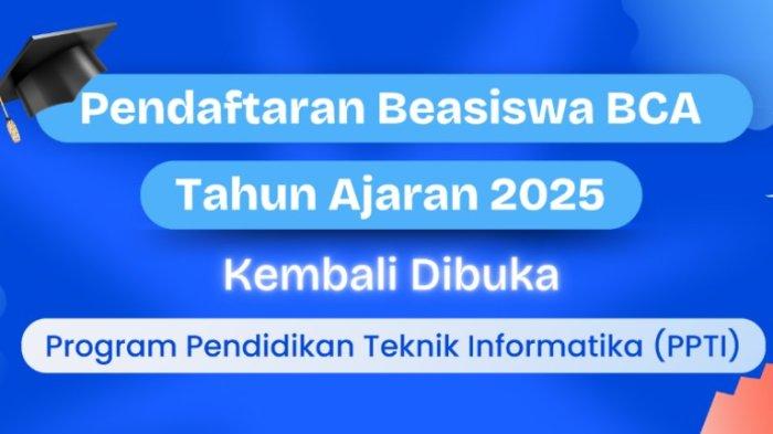 TRIBUNNEWS.COM - Bank Central Asia (BCA) kembali membuka pendaftaran beasiswa BCA tahun ajaran 2025 untuk kuliah di Program Pendidikan Teknik Informatika (PPTI).