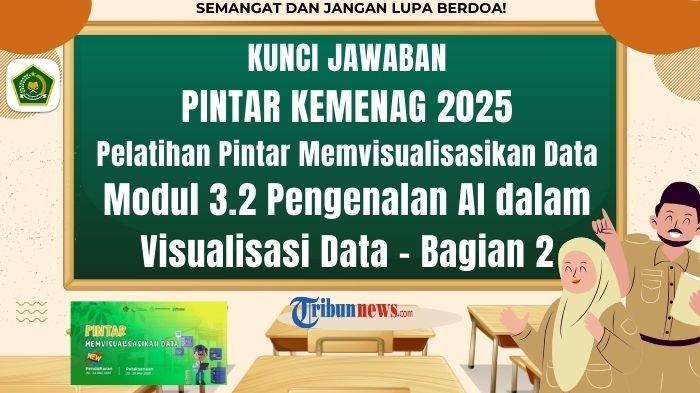TRIBUNNEWS.COM - Kunci jawaban Modul 3.2 Pengenalan AI dalam Visualisasi Data - Bagian 2 Pelatihan Pintar Memvisualisasikan Data PINTAR Kemenag Mei 2025.