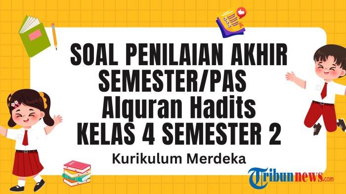 TRIBUNNEWS.COM - Berikut ini contoh soal Penilaian Akhir Semester (PAS) Alquran Hadits kelas 4 Madrasah Ibtidaiyah (MI) semester 2 Kurikulum Merdeka dan kunci jawaban.