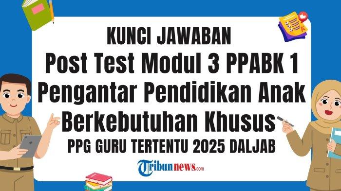 TRIBUNNEWS.COM - Kunci jawaban Post Test Modul 3 PPABK 1 Pengantar Pendidikan Anak Berkebutuhan Khusus (PPABK) dalam pembelajaran mandiri PPG 2025.
