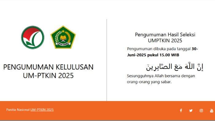 Calon mahasiswa dapat mengecek pengumuman hasil seleksi UMPTKIN 2025 melalui laman https://pengumuman-um.ptkin.ac.id/, atau klik link berikut: