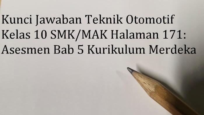 Kunci Jawaban Teknik Otomotif Kelas 10 SMK/MAK Halaman 171 Asesmen Bab 5 Kurikulum Merdeka
