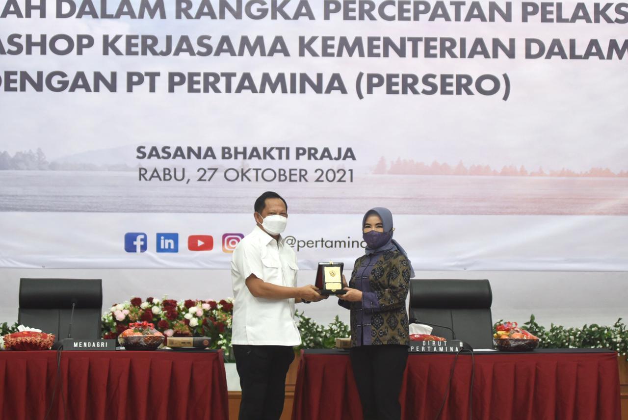 Direktur Utama Pertamina Nicke Widyawati mengapresiasi dukungan Kemendagri dalam percepatan Pertashop terutama dalam mempercepat proses perizinan dan memberikan perpanjangan dispensasi perizinan.