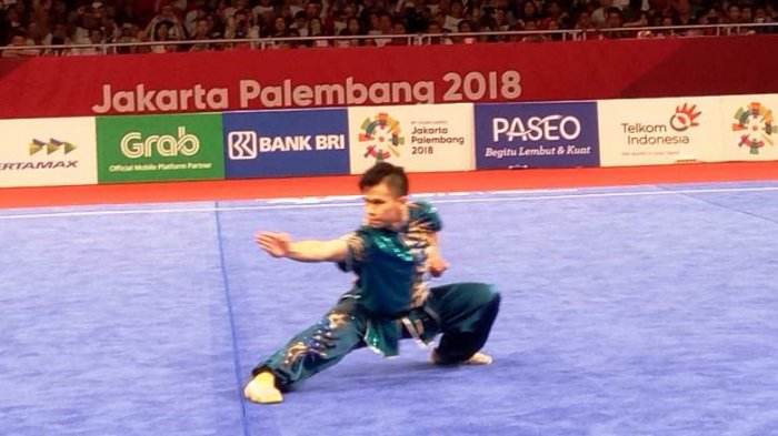 TRIBUNNEWS.COM, JAKARTA - Atlet wushu Indonesia yang bertarung di nomor Changquan Putra, Marvelo Edgar Xavier sukses meraih medali perak Asian Games 2018, Sabtu (19/8/2018) di GOR Jiexpo. Jakarta Utara.