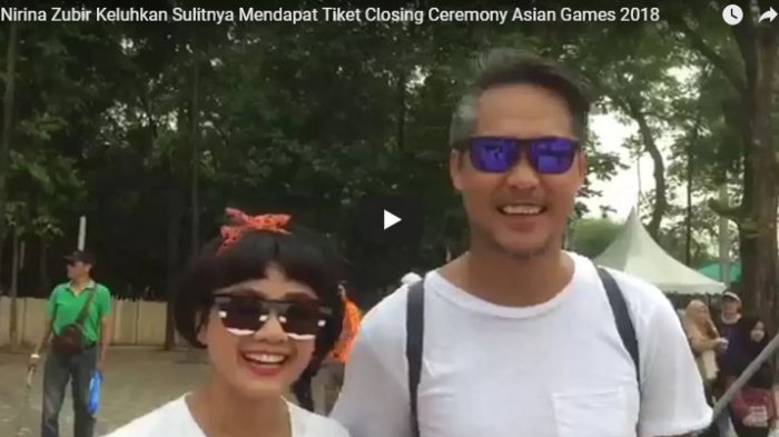 Artis peran, Nirina Zubir mengeluh kesulitan mendapatkan tiket penutupan Asian Games 2018 yang digelar, Minggu (2/9/2018).