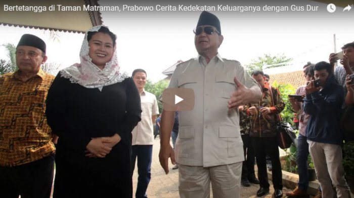 "Rumah keluarga Gus Dur itu persis di sebelah kakek saya, satu pagar di Taman Amir Hamzah, dulu Taman Matraman. Di situ hubungan antar keluarga sangat baik. Bahkan waktu eyang putri saya meninggal, yang menyalatkan adalah ibunda Gus Dur, ibu Sholehah Wahid Hasyim," kata Prabowo.