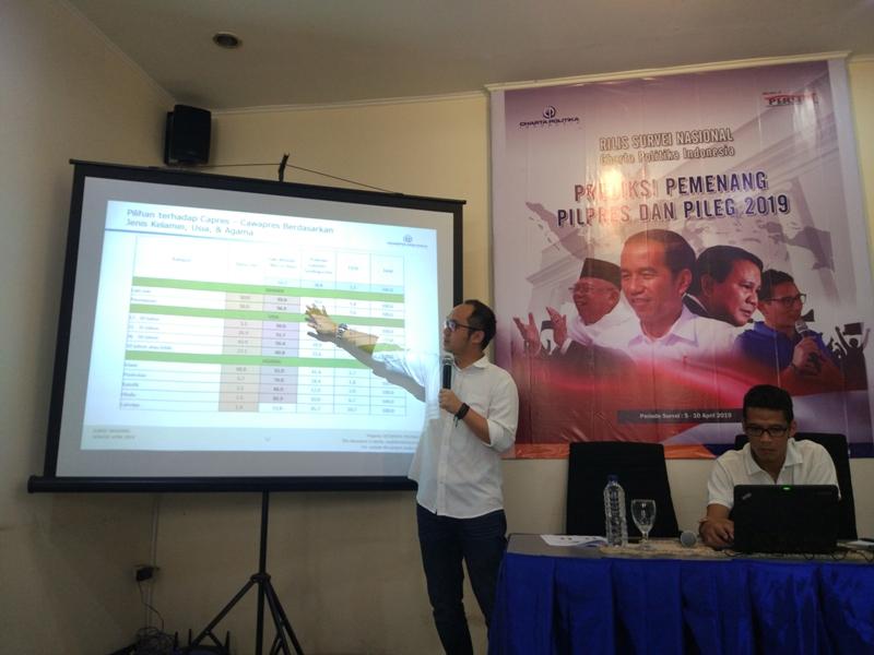 Lembaga survei Charta Politika menyampaikan laporan perihal hasil quick count Pemilihan Presiden (Pilpres) dan Pemilihan Legislatif (Pileg) 2019.