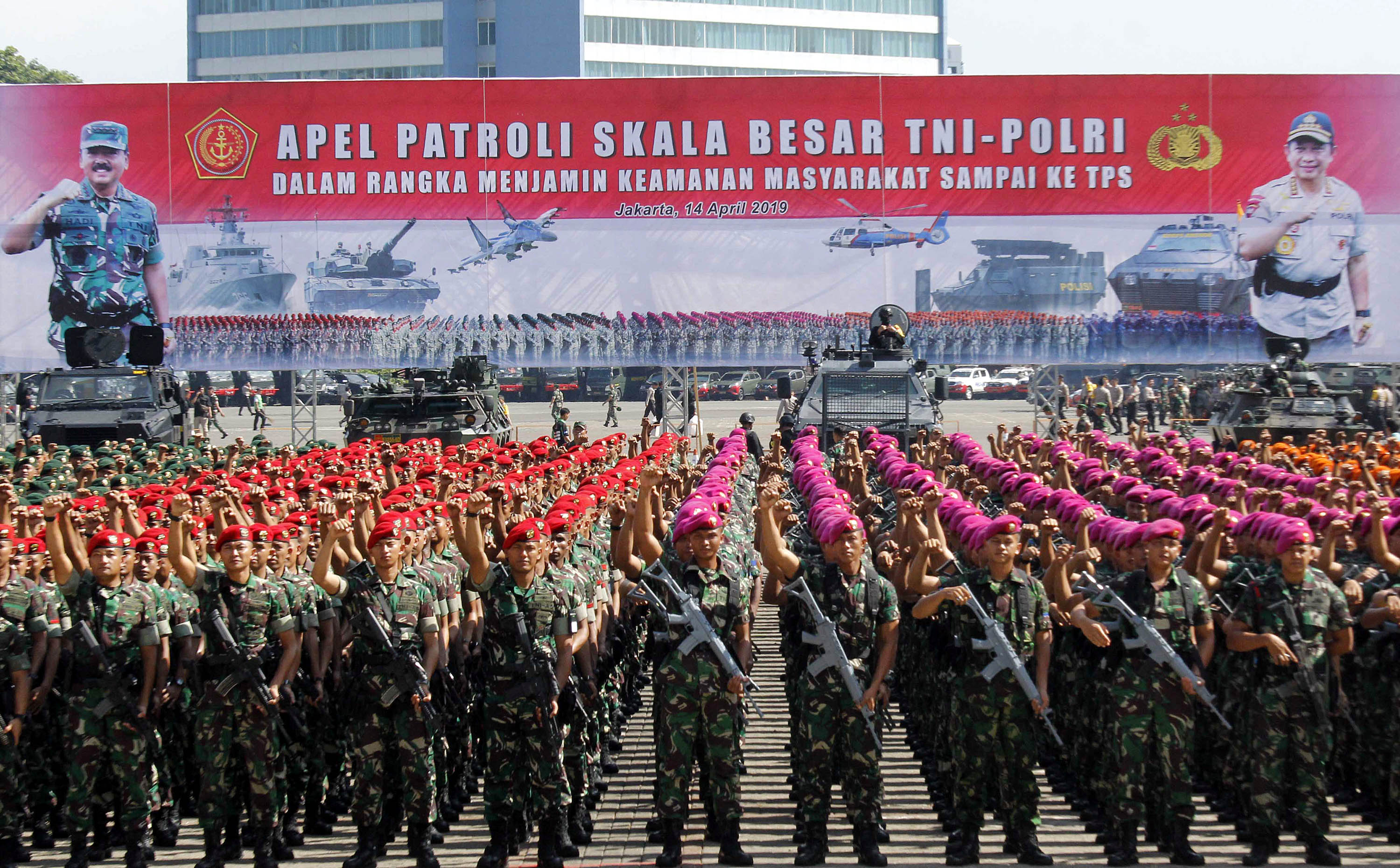 Sementara itu, aparat TNI dan Polri telah menyiapkan pasukan dalam pengumuman hasil Pemilu 2019.