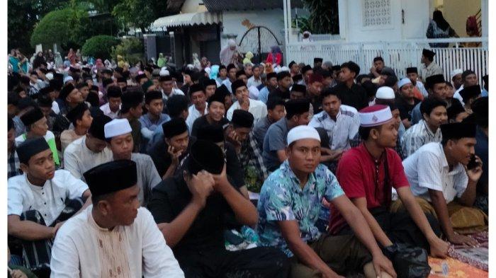 Ribuan jamaah dengan dibantu petugas kepolisian mengantri mendapatkan pembagian bingkisan dari perwakilan keluarga Said Abdullah.