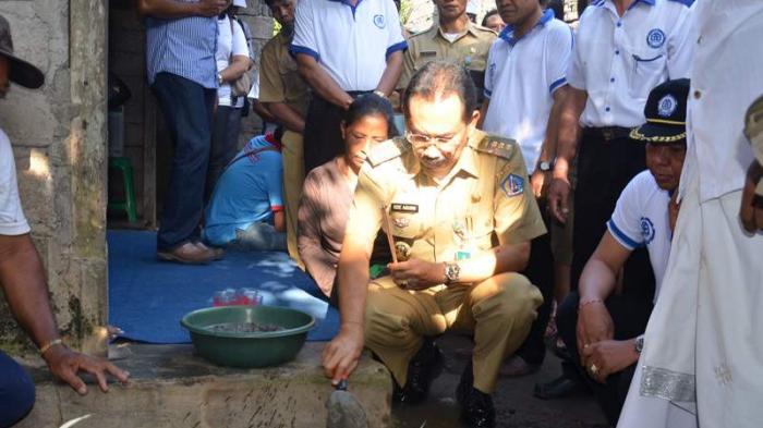 Bupati Badung A.A. Gde Agung di sela-sela peletakan batu pertama bedah rumah Ni Rai Suryani, menyambut baik kegiatan bedah rumah yang dilaksanakan Gapensi Badung.