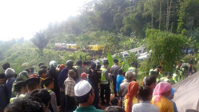 Hingga berita ini diturunkan, belum ada kepastian kapan proses evakuasi akan selesai. Dua gerbong penumpang dan satu lokomotif KA Malabar anjlok di tepi jurang sedalam kira-kira 50 meter, Jumat (4/4/2014) malam.