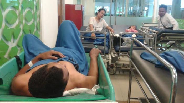 Juari satu diantara beberapa korban, terbaring bersama tiga orang korban di depan ruang pengaduan IGD RS Kariadi, Jumat (20/02/2015).