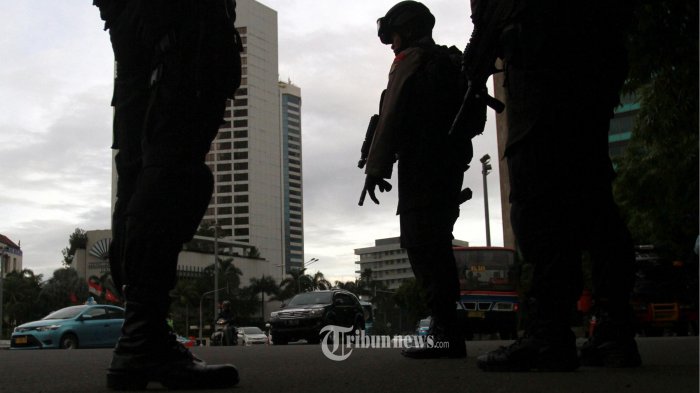 Kepolisian dan TNI yang berjaga di lokasi sekitar mencurigai sebuah koper polo berwana hitam.