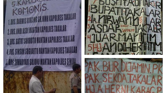 Bupati Takalar Burhanuddin Baharuddin dan Kapolres Takalar AKBP Darwis Rincing dituding 'komonis.' Nama mereka terpampang besar di atas baliho warga.
