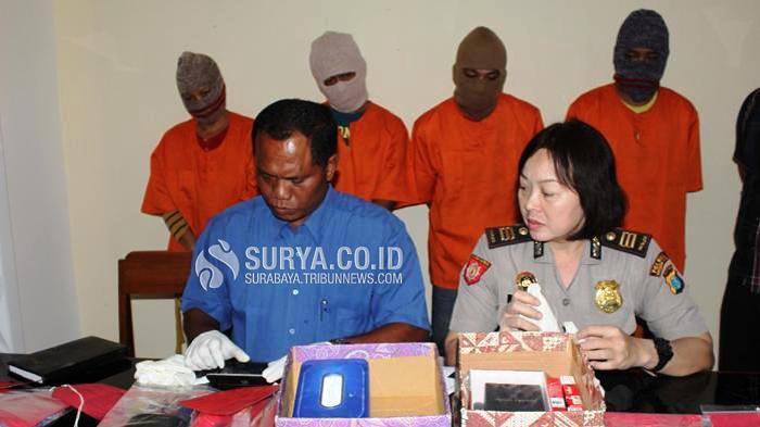 TRIBUNNEWS.COM, MADIUN - Tim Satuan Reskoba, Polres Madiun Kota berhasil menggulung 5 tersangka pengedar sabu-sabu.