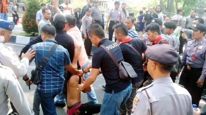 TRIBUNNEWS.COM, CIANJUR - Dua orang dari massa Gerakan Reformis Islam (Garis) Cianjur yang terlibat ricuh sesaat setelah hakim memutuskan vonis 6 bulan untuk Chep Hernawan, mantan pimpinan ISIS Regional Indonesia, Kamis (4/6/2015) berhasil diamankan polisi.
