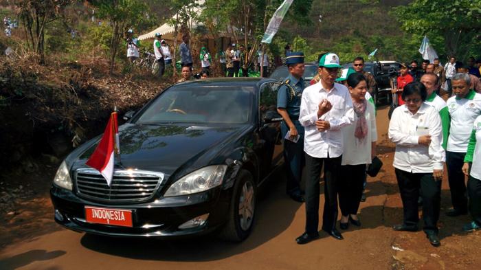 Presiden meminta iring-iringan mobil kepresidenan berhenti di pinggir jalan Desa Biih untuk membeli durian yang dijajakan warga setempat.