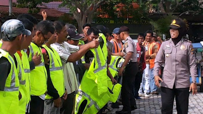 Ratusan pengemudi becak motor (bentor) yang dikumpulkan dan diberikan arahan di Polres Bangka mendapatkan bantuan rompi, Kamis (26/11/2015).