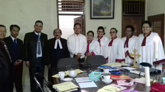 Tak sampai 10 menit, Bima kembali keluar setelah sempat berfoto bersama pendeta, pengurus gereja dan panitia Natal di Gereja HKBP Bogor.