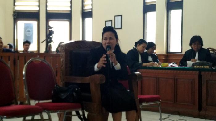 TRIBUNNEWS.COM, DENPASAR - Laureta Inneke, saudara Margriet C Megawe hadir dalam sidang lanjutan kasus pembunuhan Engeline dengan terdakwa Margriet C Megawe, di PN Denpasar, Bali, Senin (18/1/2016).