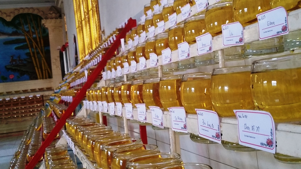 Namun, jika mengintip ke ruangan vihara utama, tempat patung sang Budha berada, lebih dari seribu pelita audah mulai tersusun rapi.